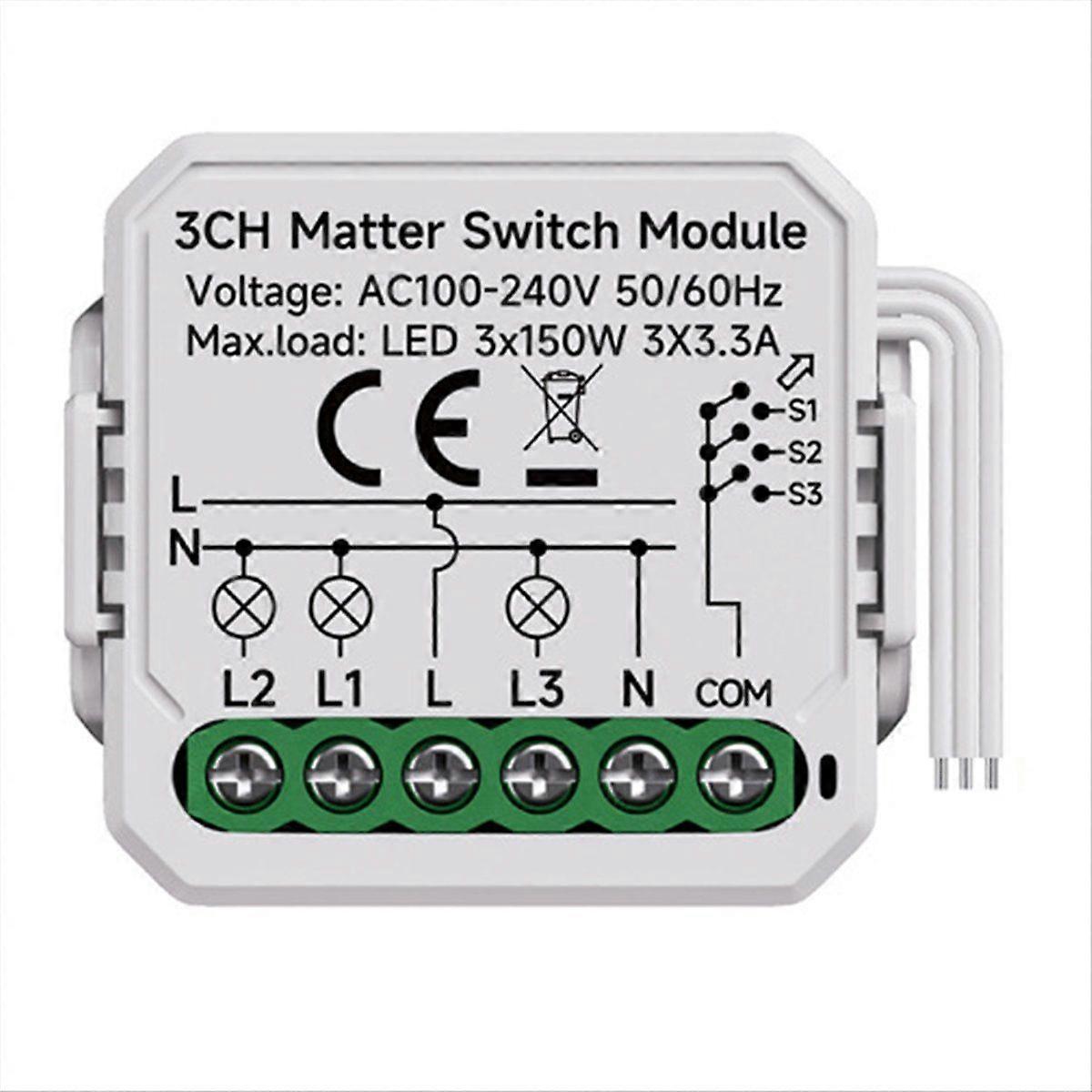 3 Gang Matter WiFi Switch Module Smart Home Relay Automation Breaker Work with Home 3CH