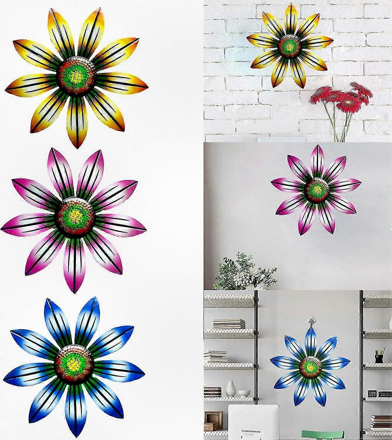 3 Metal Flower Wall Art Pieces Colorful Garden Fence Hanging Decor for Bedroom Outdoor Indoor Decoration
