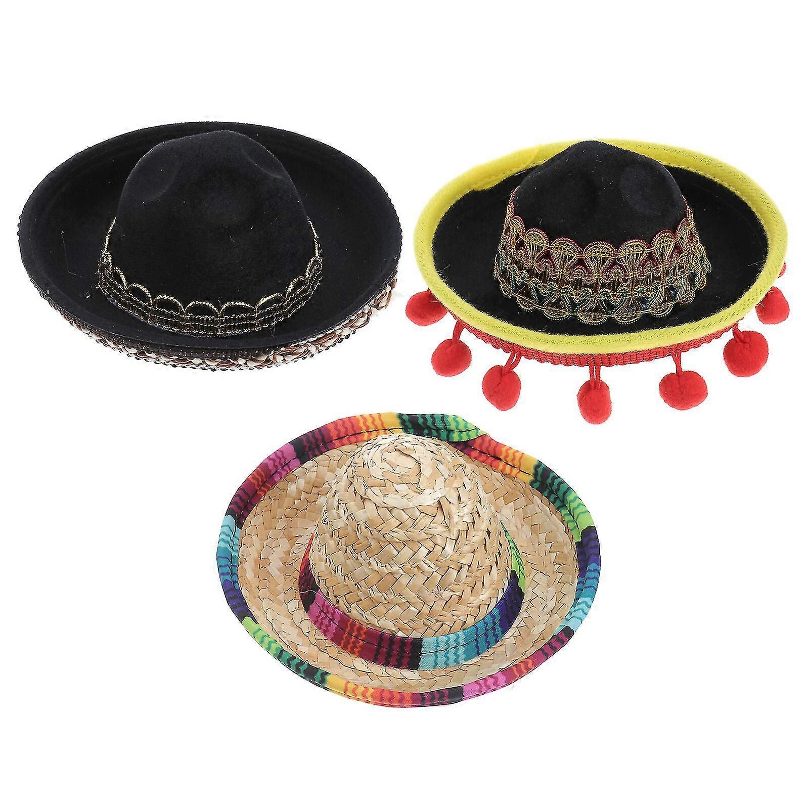 3 Pcs Kids Costume Pet Photo Props Mini Mexican Hat Mini Sombrero Hats Dog Mexican Hat Mexican Party Hats