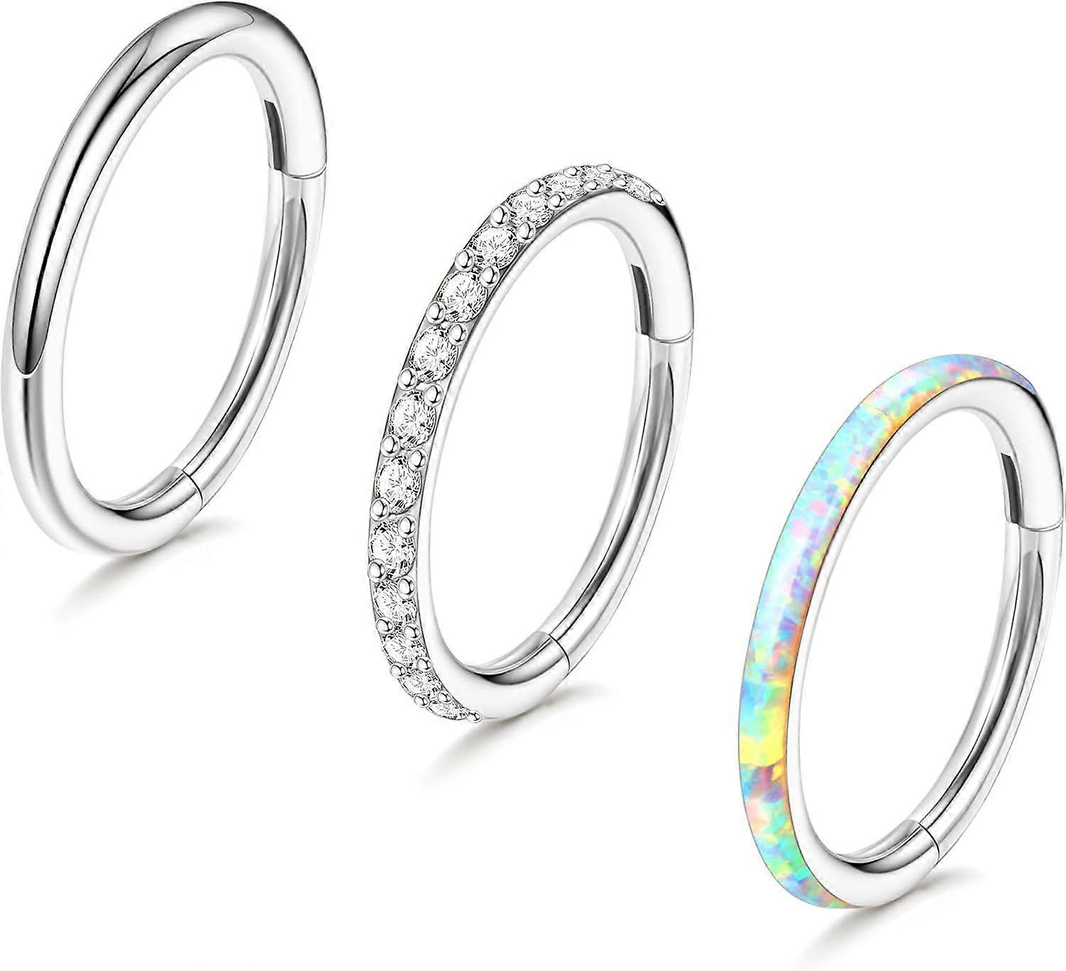 3pcs Nose Rings Hoops - 316L Surgical Steel Hinged Nose Hoops 16G/18G/20G Clicker Septum N