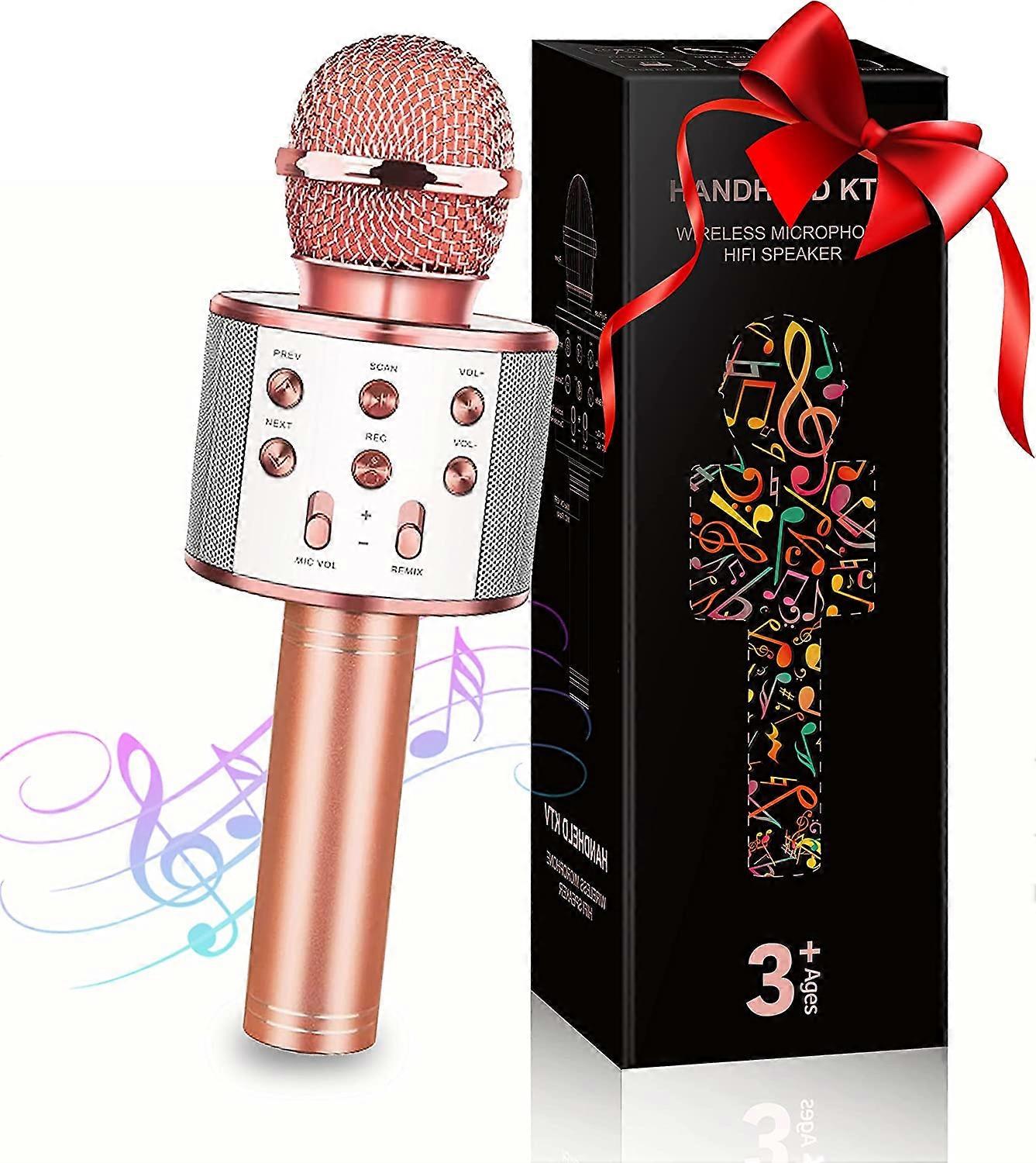 [High Sound Quality]-wireless bluetooth microphone,3D stereo sound,So it equips with high-quality speakers to make the sound large enough to provide high-fidelity sound quality. when it connected,it can be used as microphone,Kids toys, Bluetooth speaker etc.[Three Way Connection] -Bluetooth and Audio Jack , and Supporting Micro SD Card, Including By The Bluetooth Devices for Smart-Phones, laptops etc and the great majority singing App Connection. It's also high compatibility so supporting micro SD card max 32GB(NOT INCLUDED) .[Excellent Design]- portable microphone designed to fit the hands of children and adults simultaneously. Mini home KTV for music playing and singing at any time. it fit for 3+ years old children, teen, adults.[Microphone Battery]--Built in 2400mAh rechargeable battery,supporting to play or sing at least 4 hours,it's not only long standby time and but also charges quickly.