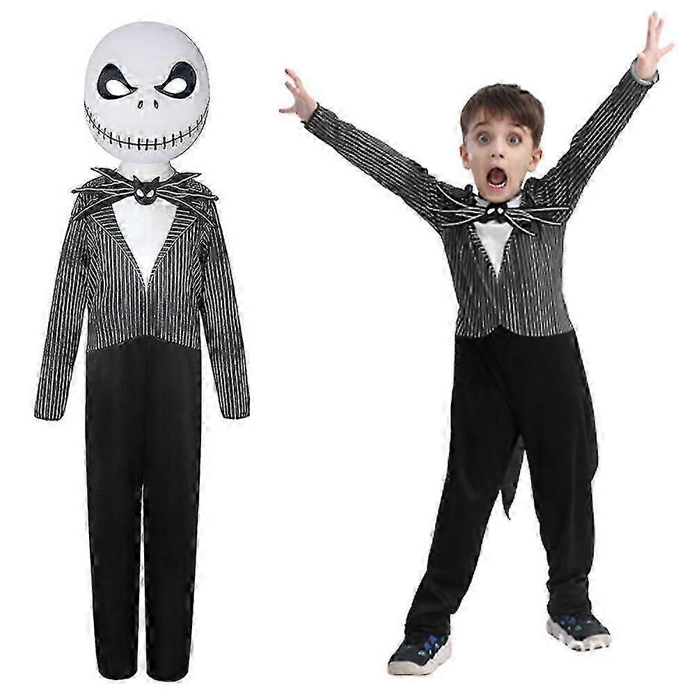 3-14 Years Kids Halloween Nightmare Jack Skellington Cosplay Jumpsuit With Mask