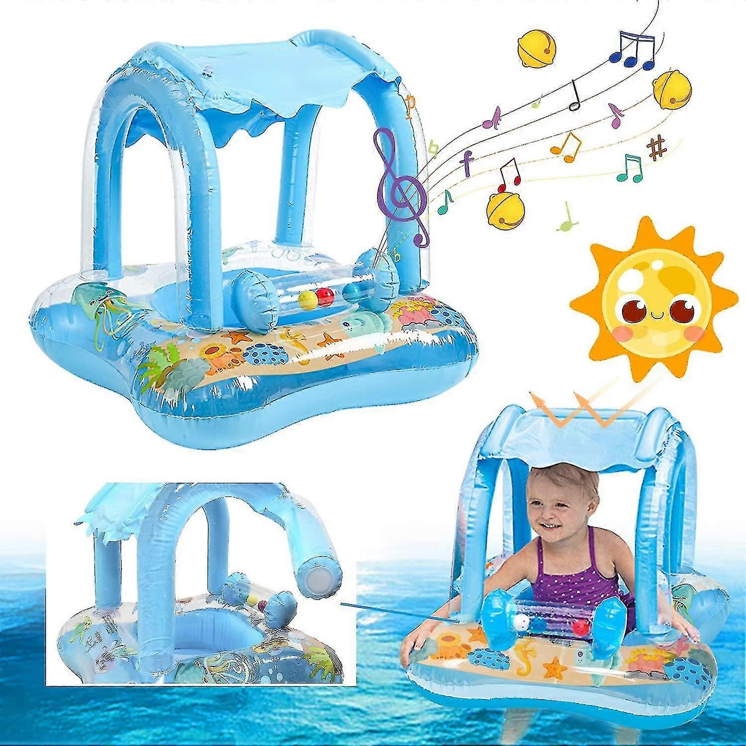 Baby Life Buoy With Bell For 3-36 Months, Inflatable Swimming Ring, Pvc Baby Pool Float Toys With Sunshade And Seat