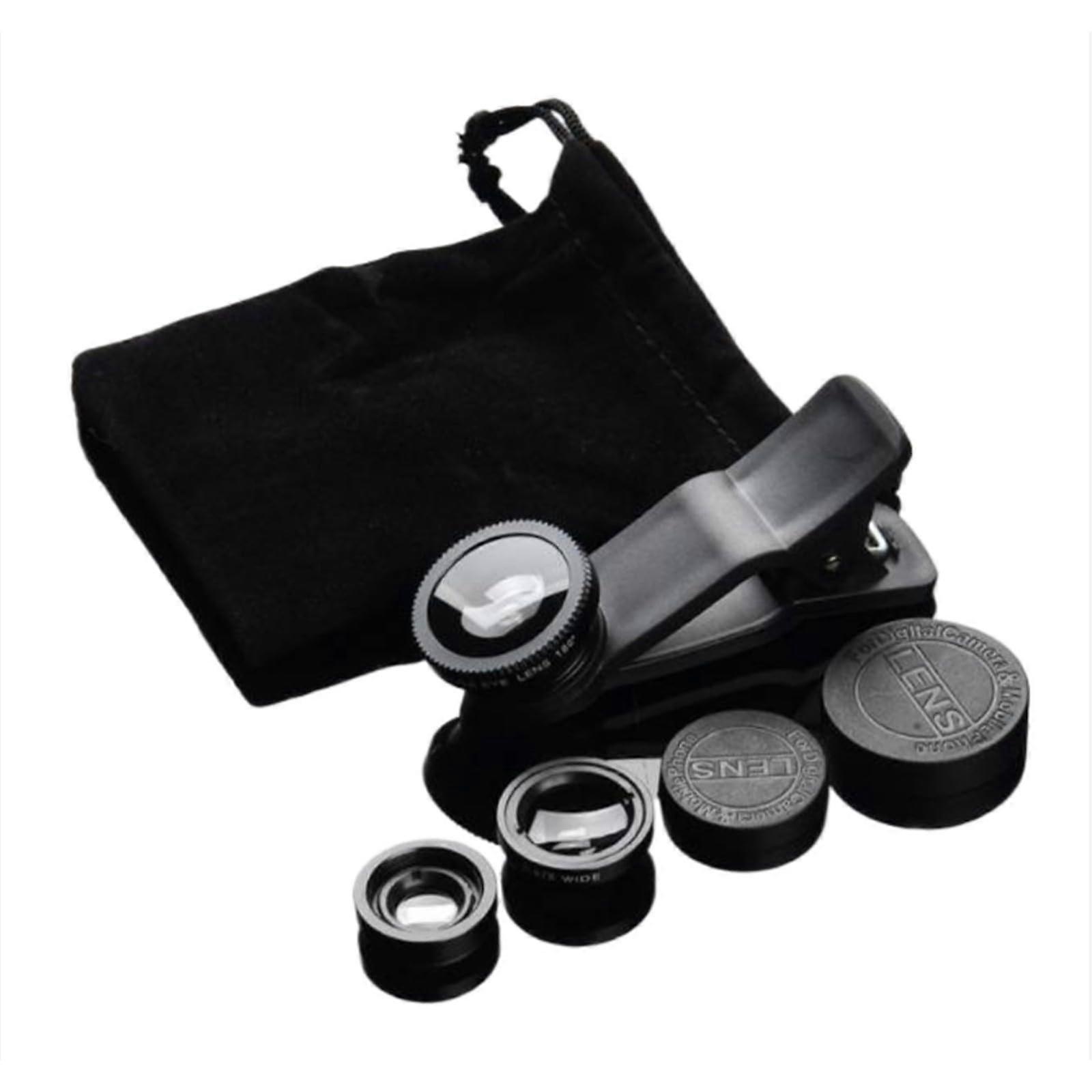 3 In 1 Camera Lens Portable Clip On Phone Fisheye Lens Wide Angles Macro Fish Eye Lens Clip Lens Black