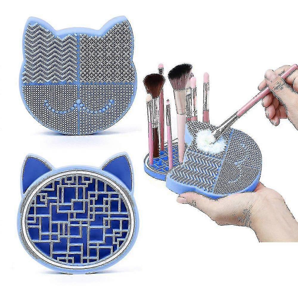 3 In 1 Silicone Makeup Brush Cleaning Pad, Makeup Brush Drying Rack Detachable From Cleaning Pad, Portable Makeup Wash Tool (blue)
