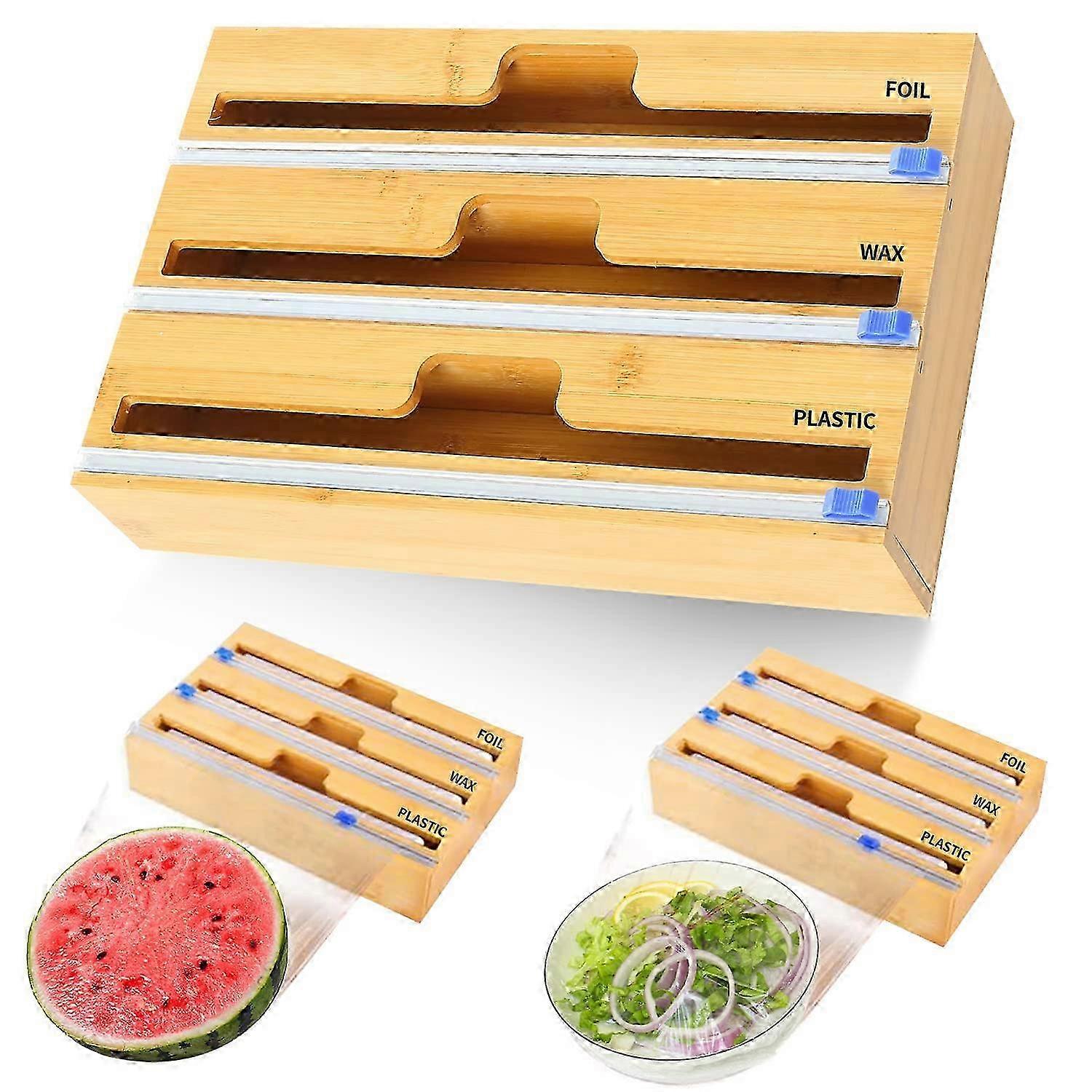 3-in-1 Bamboo Wrap Dispenser with Slide Cutter for Kitchen Drawer 12' Roll