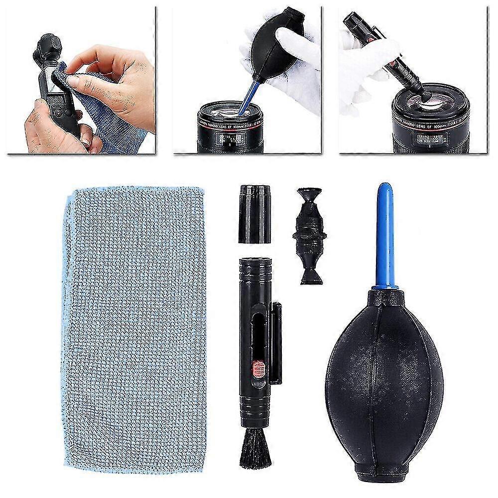 3 in 1 Lens Cleaning Cleaner Dust Pen Blower Cloth Kit For DSLR VCR CameraAir BlowerDirect a powerful stream of air to blow away dirt and specks from lenses, DSLR sensors and camera mirrorsSafer and easier to control than compressed airCleaning ClothMicrofibers are made with premium materials and designed to the highest standard of qualityIdeal for cleaning oil and dirt off eyeglasses, For iPhone/iPad and other touch screens, binocular lenses, digital SLR and other camera lenses, GPS devices, and other delicate opticCleaning PenSafe for all lenses including multi-coated surfacesThe small design easily fits in any camera bagHidden in the other end is a double sided soft pad with a non-liquid cleaning agent to remove fingerprints and more serious dirt, all without damaging the anti-reflection coating on your lensPackage including:1 X Air Blower1 X Lens Pen Brush1 X Cleaning Cloth