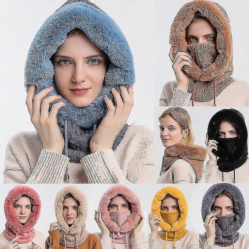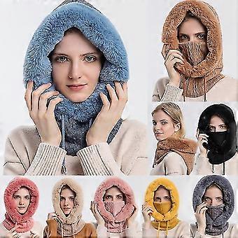 3-in-1 One-piece Women's Winter Knitted Hat Scarf Hat Mask Set Ski Cap Knitted Neck Warmer Scarf Full-face Mask Thickened Warm Windproof Cycling Neck