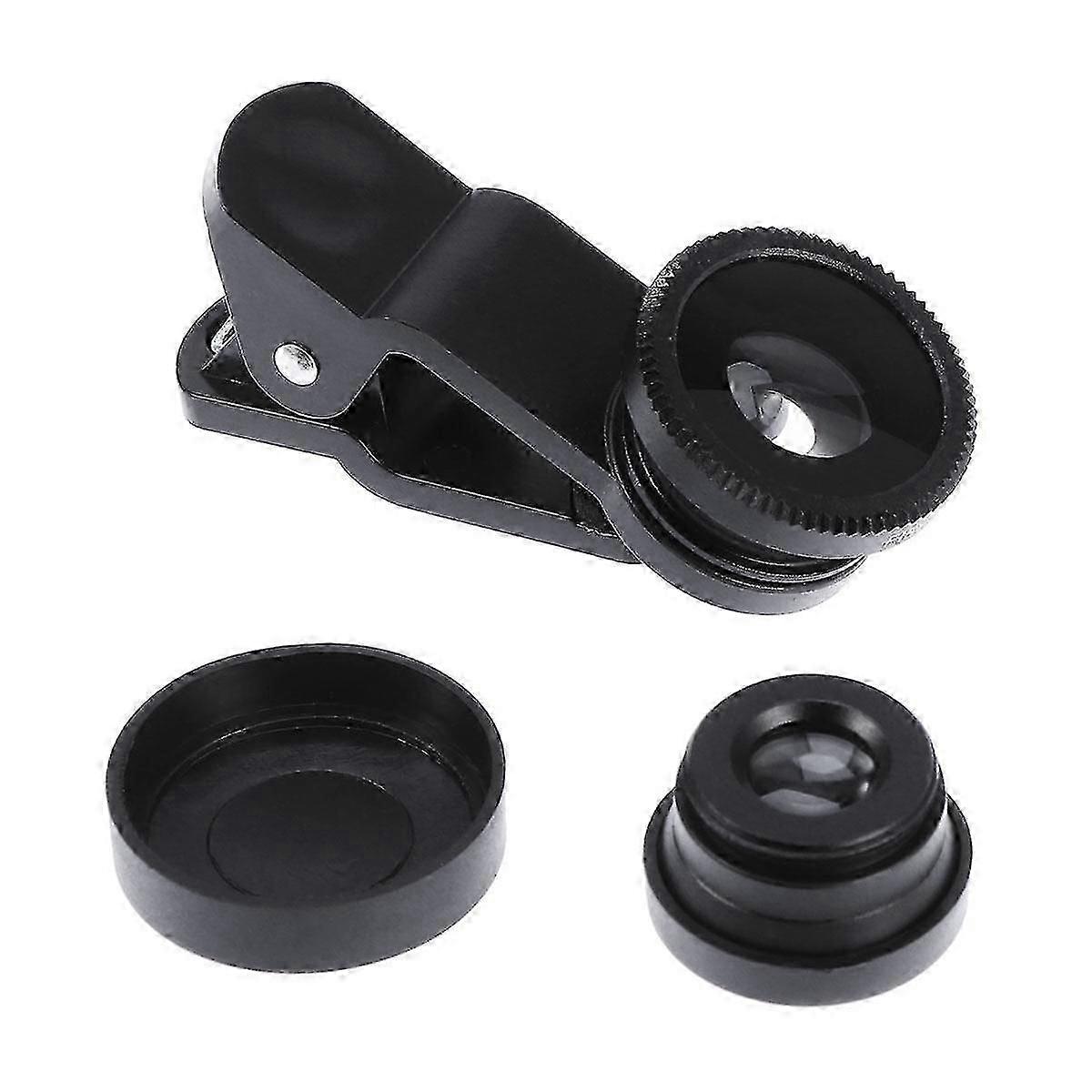 3 in 1 Phone Camera 0.67X Wide Angle Macro Lens 180 Degree Fisheye Clip-On Professional for Smartphones (Black)