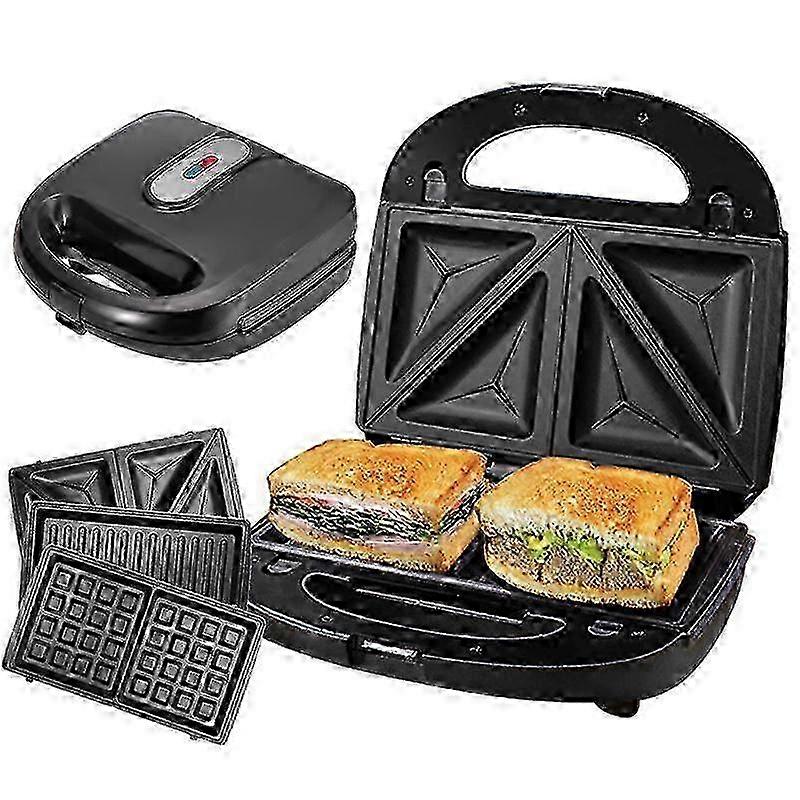 3 IN 1 Sandwich Maker - Comes with 3 removable plates(8.27 x 4.72 inch), sandwich, waffle, and grill plates. You can make quick and decilious meals at any time ot the day. HASSLE-FREE CLEANING - Panini press sandwich maker with removable plates and Nonstick coating, makes it very easy to clean - simply wipe them clean with a damp cloth once theyve cooled. SANDWICH IN A MINUTES - Sandwich toaster is powered by 750W, you can enjoy yummy food in a minutes. Save your time of making breadfast! ARE SANDIWCH READY? - Don't worry! The indicator lights will let know when sandwiches are ready !With power and ready indicator lights, easy to remove plates and a locking latch, the snack maker is simple and safe to operate. Note: Due to the light and screen setting difference, the item's color may be slightly different from the pictures. Please allow slight dimension difference due to different manual measurement.