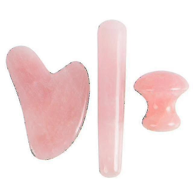 3 In 1 Natural Rose Quartz Guasha Jade Massage Stick For Facial Slimming Lifting Head Back Acupoints--