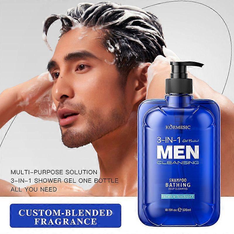 3-in-1 Men's Oil Control Cleansing Shampoo & Body Wash, Deep Cleaning Formula with Premium Fragrance, 300ml/10.15 fl.oz