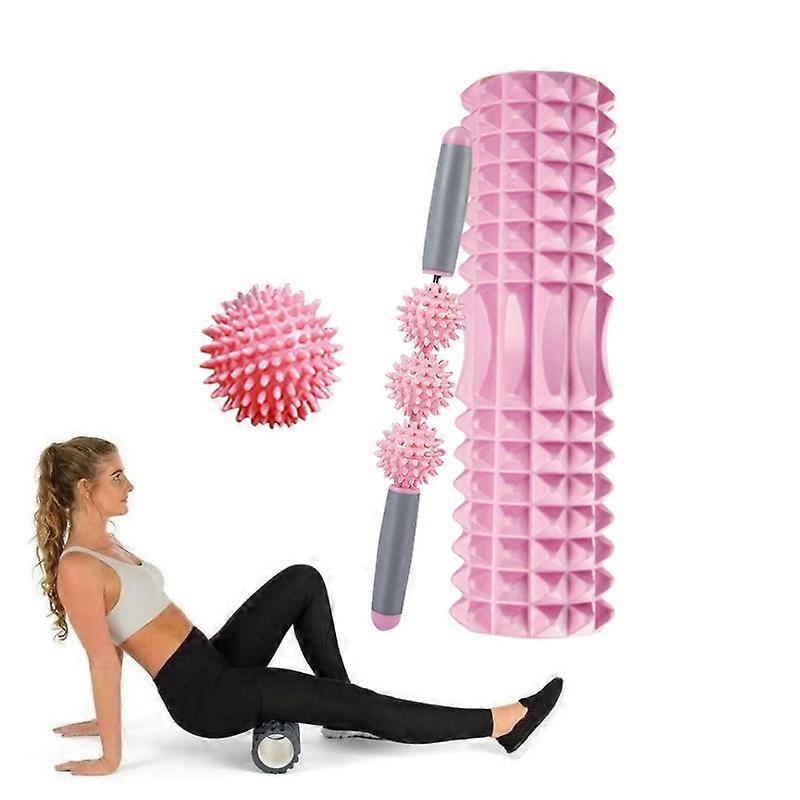 3 in 1 Eva Foam Roller Hollow Muscle Relaxation Roller Yoga Column Set, Length: 45cm (Pink Crescent)