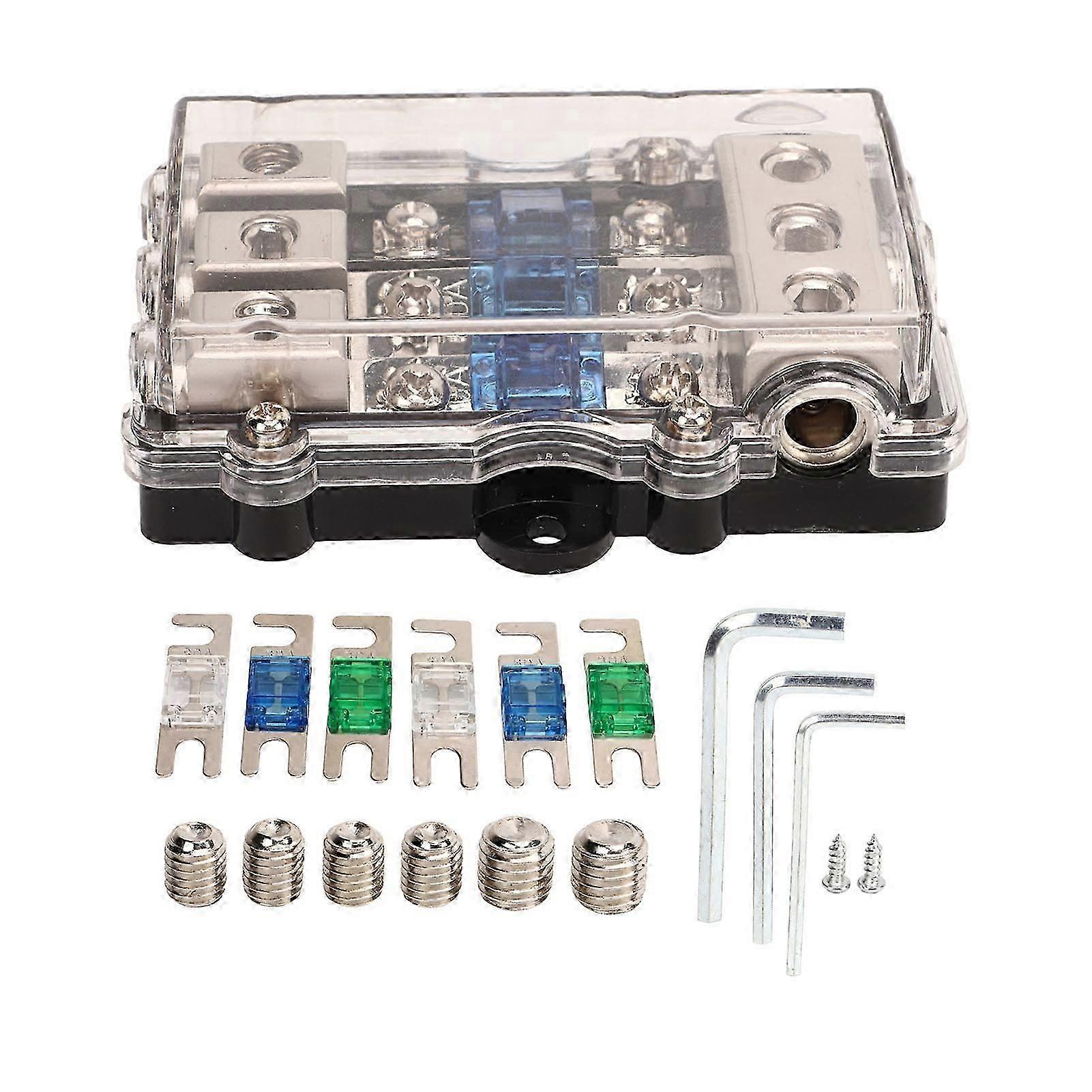 3 in 3 Out ANL Fuse Holder with 6 Fuse Zinc Alloy Nickel Plating Fuse Block for Car RV Yacht DC Circuit