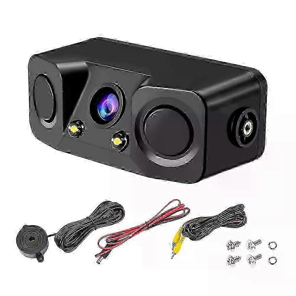 3 In 1 Radar Parking Sensor Kit 170 Degree Angle Reversing Camera Ultrasonic Parking Sensor Camera Built-in Speaker Night Vision