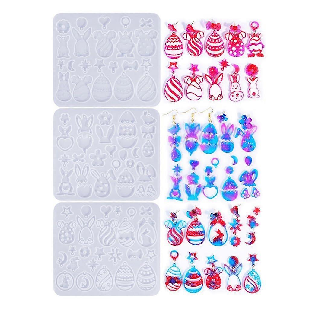 3 x Epoxy Mold for Earrings, Eggs, Rabbits, Earrings, Ear Pendants, Silicone Molds for Craft Enthusiasts
