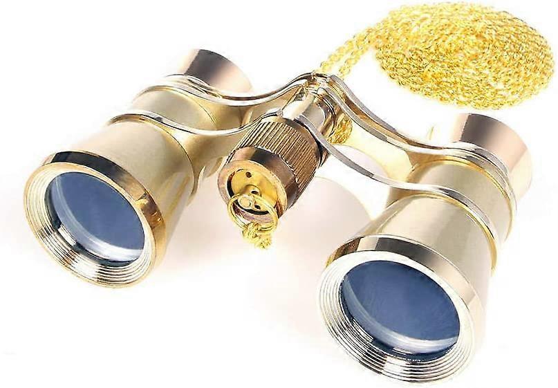 3 X 25 Classic Foldable Opera Glasses Binoculars Metal Body With Chain Optical Lens Theater Telescope Retro Design Women Girls Gifts(Golden)