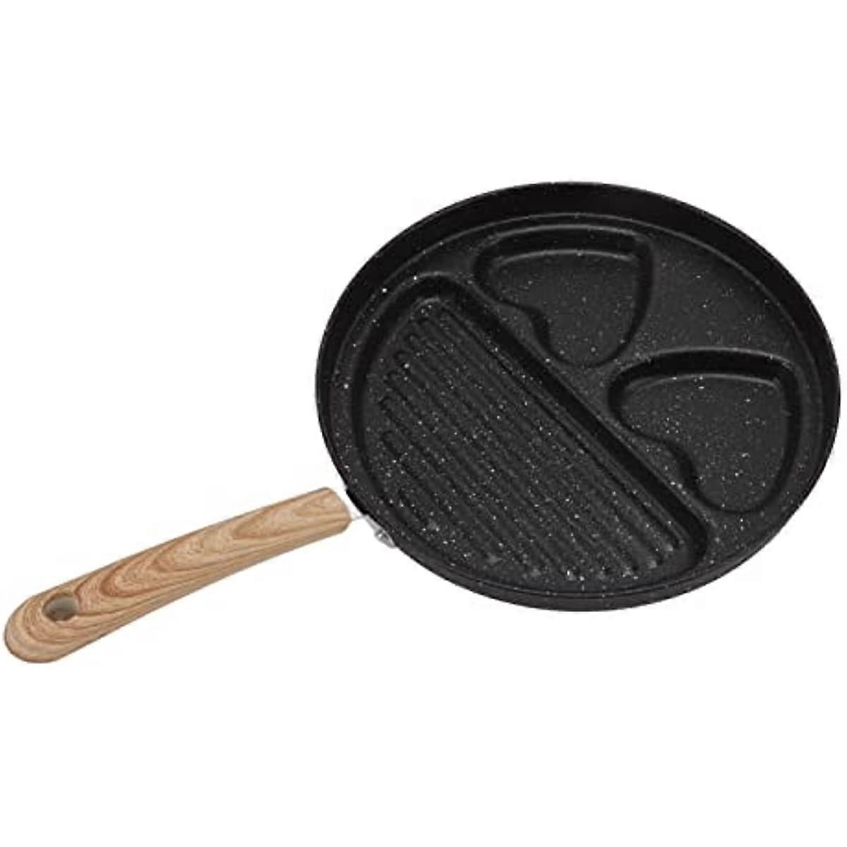 Frying Grill Pan, 3 Section Non-Stick Frying Pans Omelet Pan Poached Egg Skillet Burger Steak Pan with Granite Coating & Handle