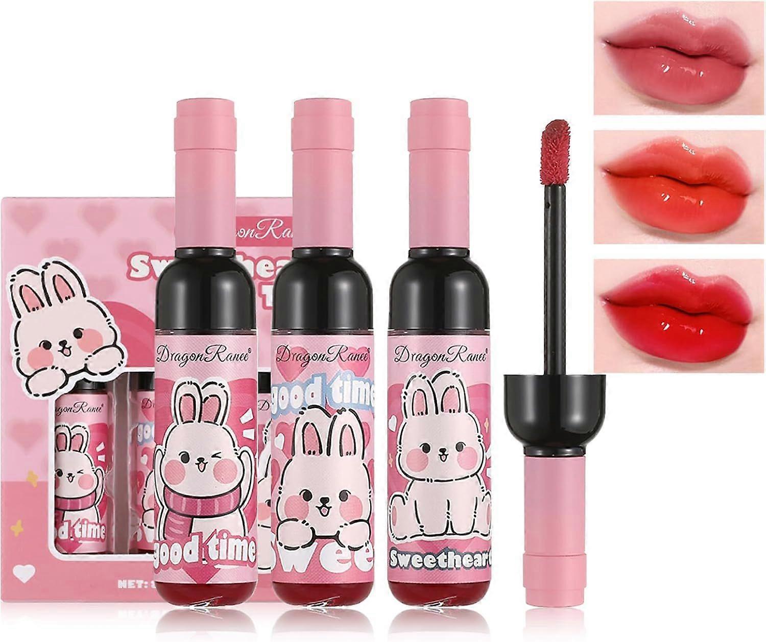 3Pcs Lip Tint Stain Set, Wine Bottle Lip Tint Stain Set, Matte Finish Velvet Lip Stain, Watery Lip Stain Long Lasting Waterproof Non-sticky High Pigme