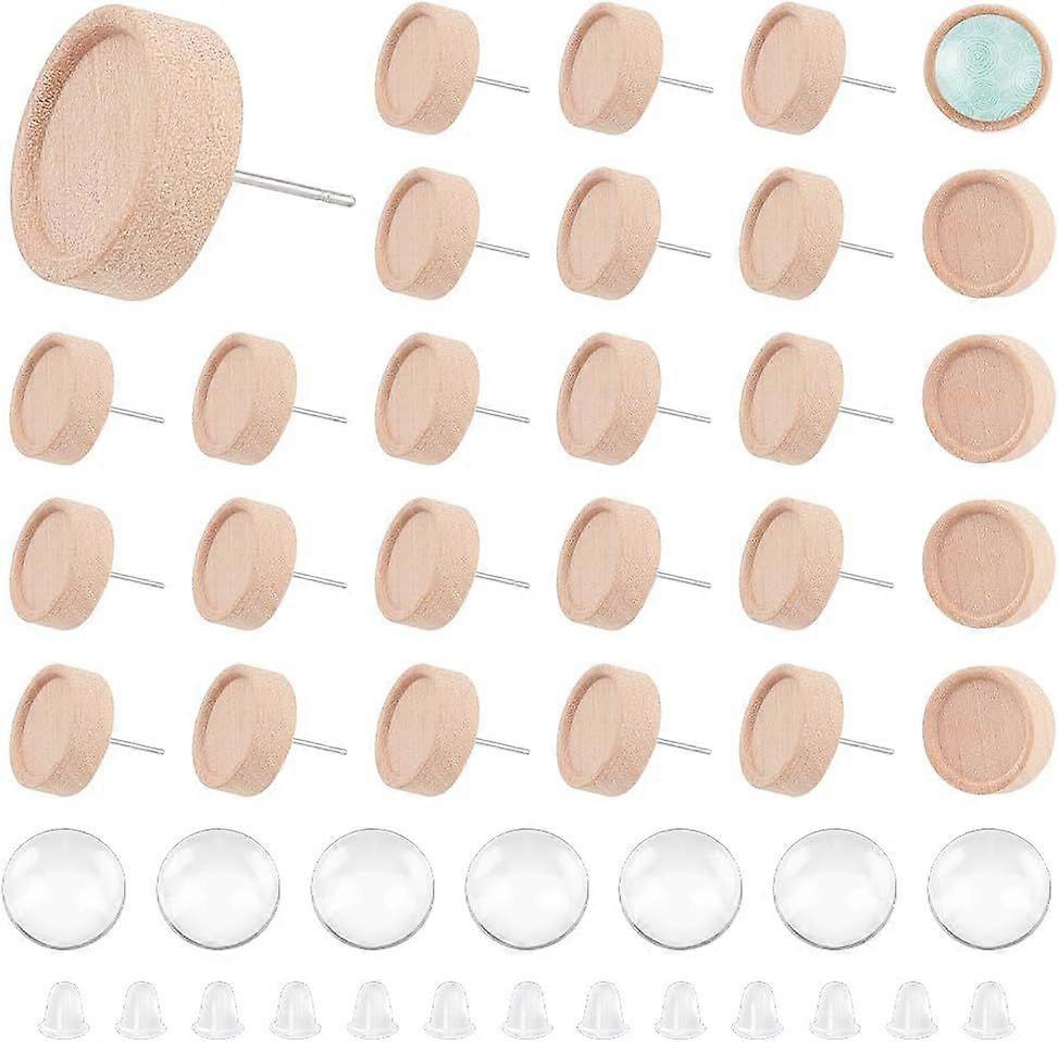30 Sets Earring Studs Maple Wood Stud Earrings Cabochon DIY Blank Dome Stud Earring Making Kit Burlywood Stud Earring Making Accessories with Cabochon