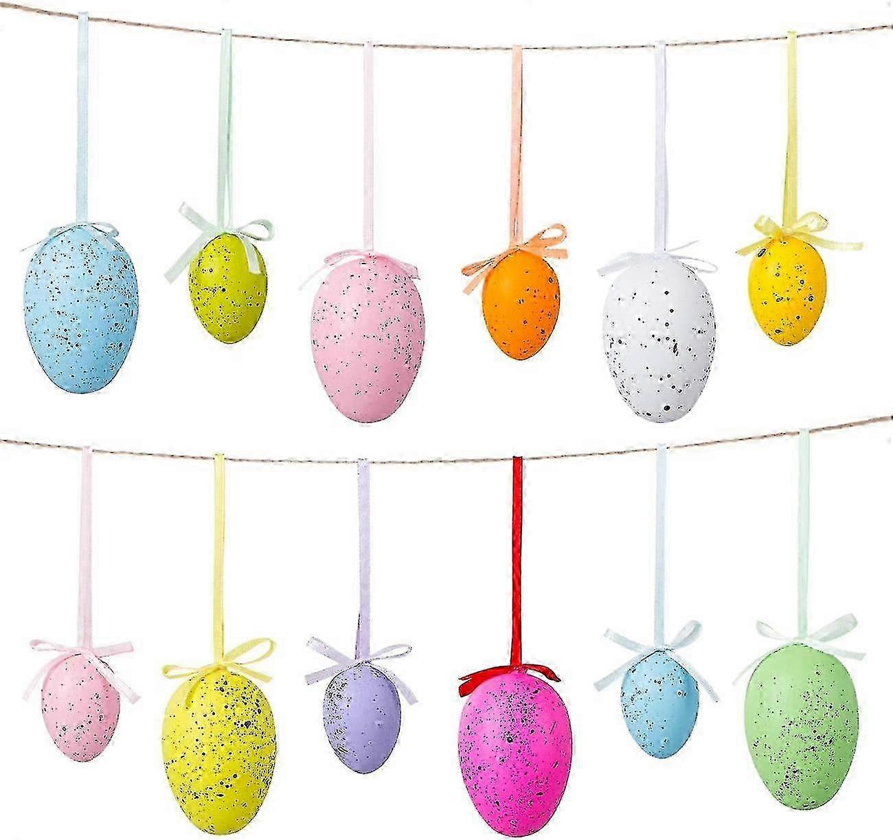 30 Packs Colorful Plastic Easter Eggs with Ribbon, Easter Decorations, Kids Toy Eggs 4*6cm & 3*4cm Multicolor
