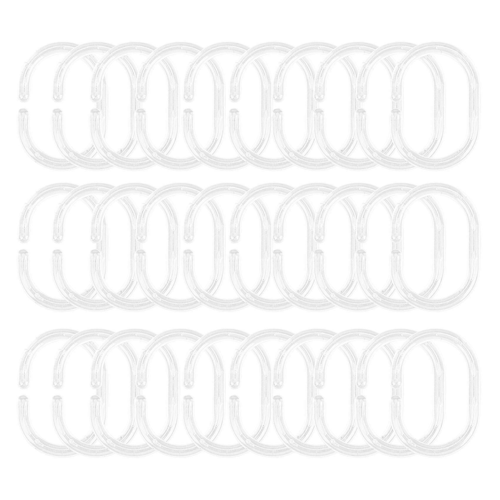 30 Pack Shower Curtain Rings Curtain C Rings Hook Hanger Bath Drape Loop Clip Glide (clear)