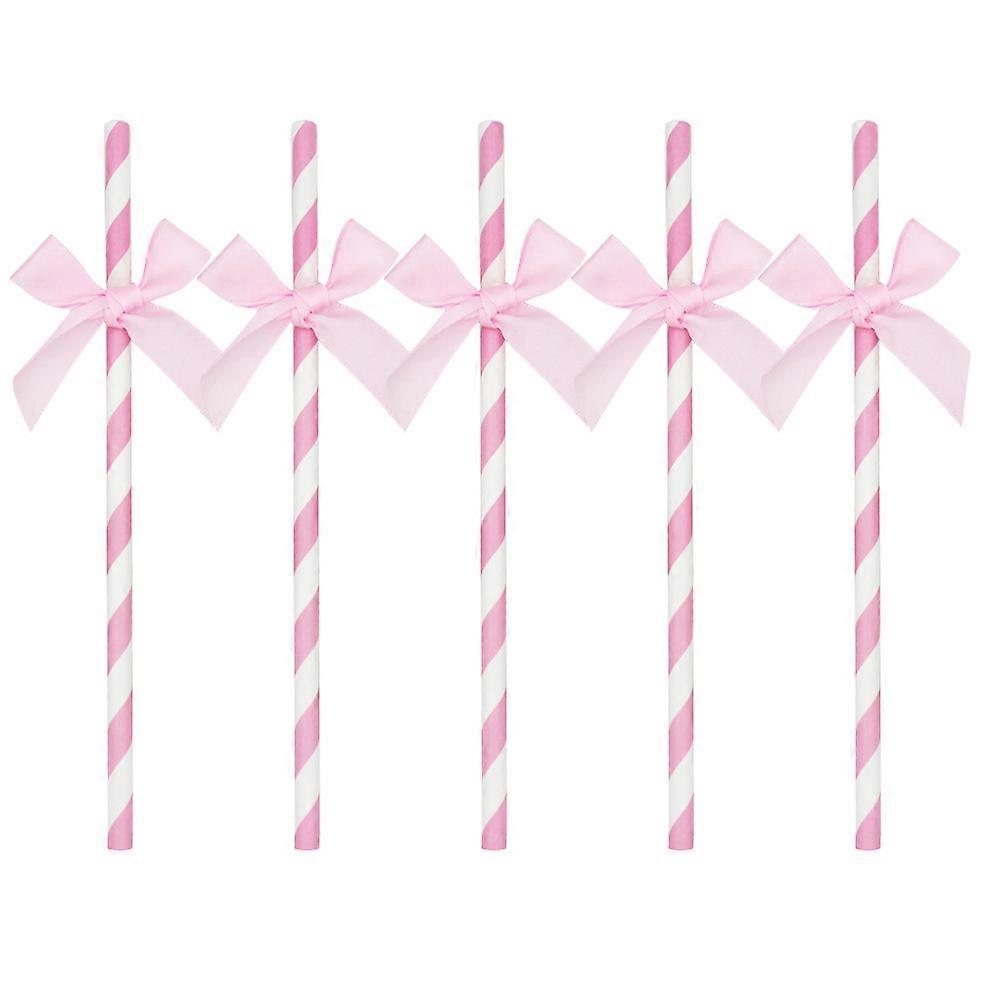30Pcs Creative Bowknot Design Paper Straws Exquisite Bow-tie Straws Birthday Cake Ornaments Party Supplies (Pink)