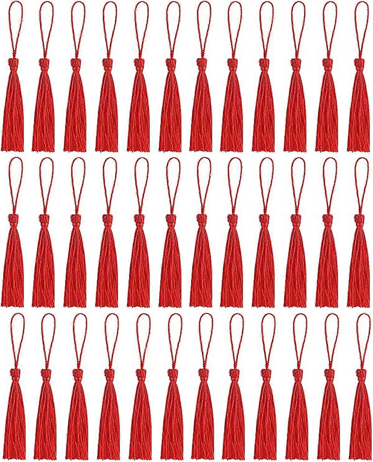 30 PCS Bookmark Tassels, Mini Tassels Silky Tassels for Bookmarks Handmade Bookmark Tassels(Red)