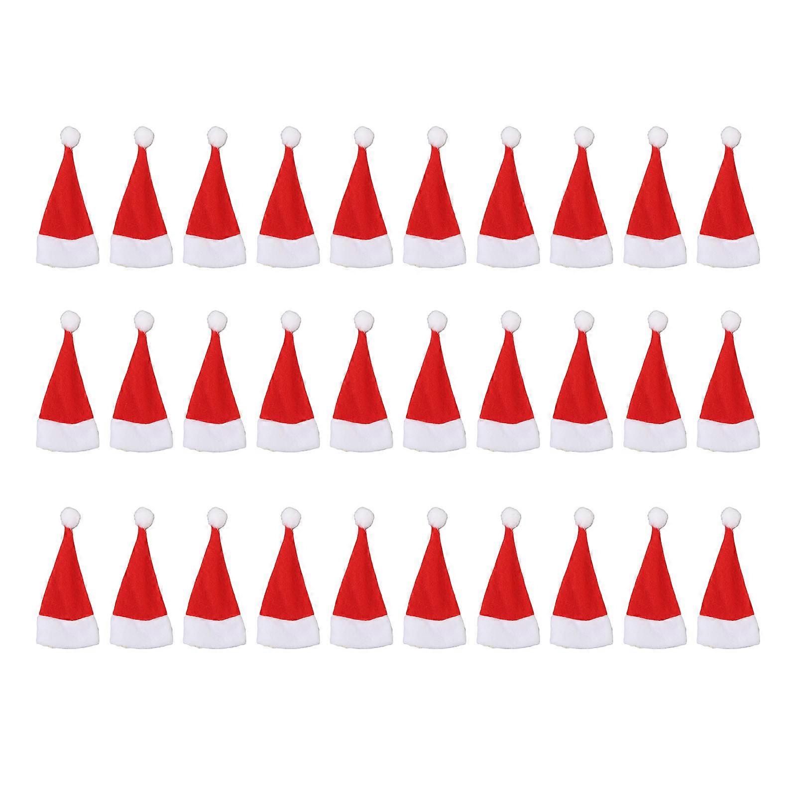 30Pcs Mini Santa Hats Christmas Miniature Ornaments for DIY Crafts Holiday Knife Fork Tableware Wine Bottle Decoration