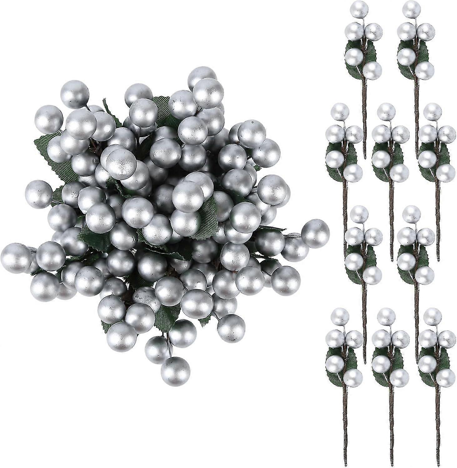 30 Pcs Artificial Berries - Christmas Holly Berries, Frosted Red Gold Silver Berry Stems