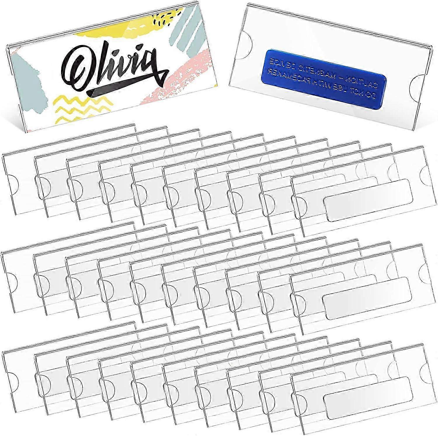 30 Pcs Magnetic Name Badge Holder Name Tags Kit with 3 Neodymium Magnets Clear