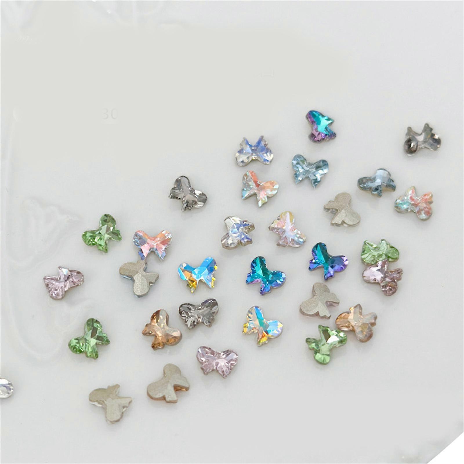 30Pcs/set Nail Art Decor 3D Glitter Sparkling DIY Mini Nail Rhinestones Accessories Crystal Butterfly Nail Charm Mixed colors