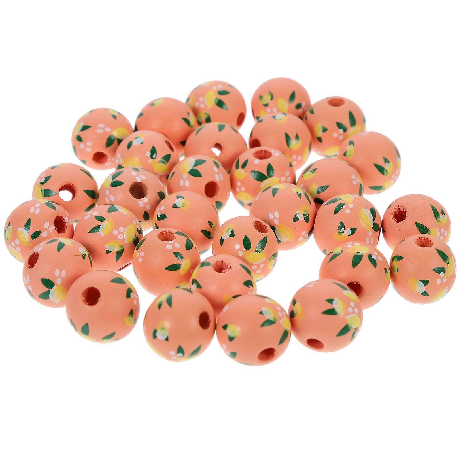 30Pcs Lemon Pattern Gift DIY Beads Hemp Rope Tassel DIY Delicate Wooden Beads for Crafts