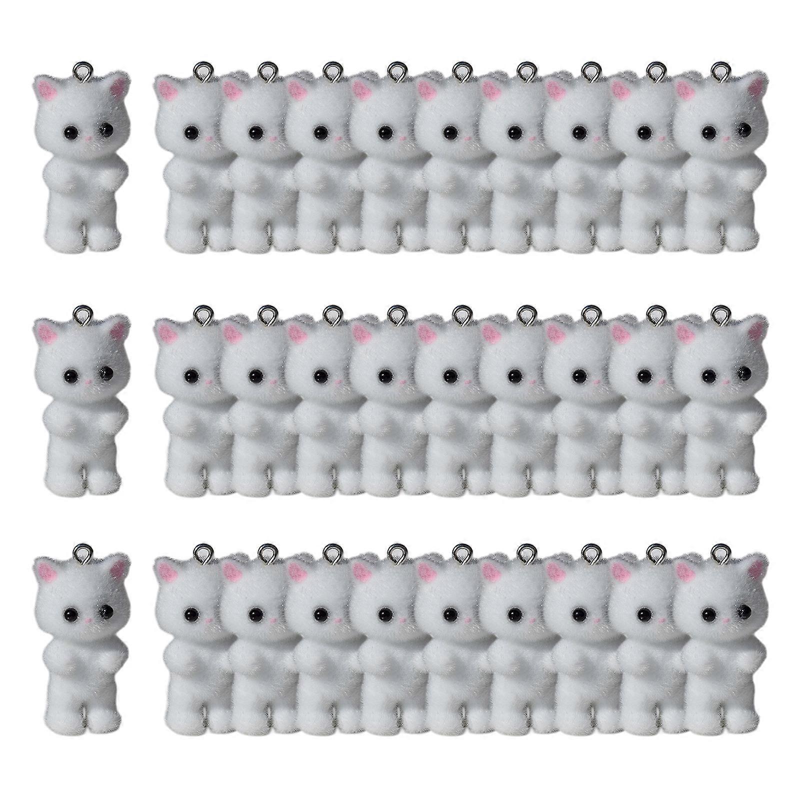 30Pcs Flocking Cats Keychain Plush Animal Bag Pendant Soft Keyring Stylish Bag Accessories Creative Jewelry Ornament White