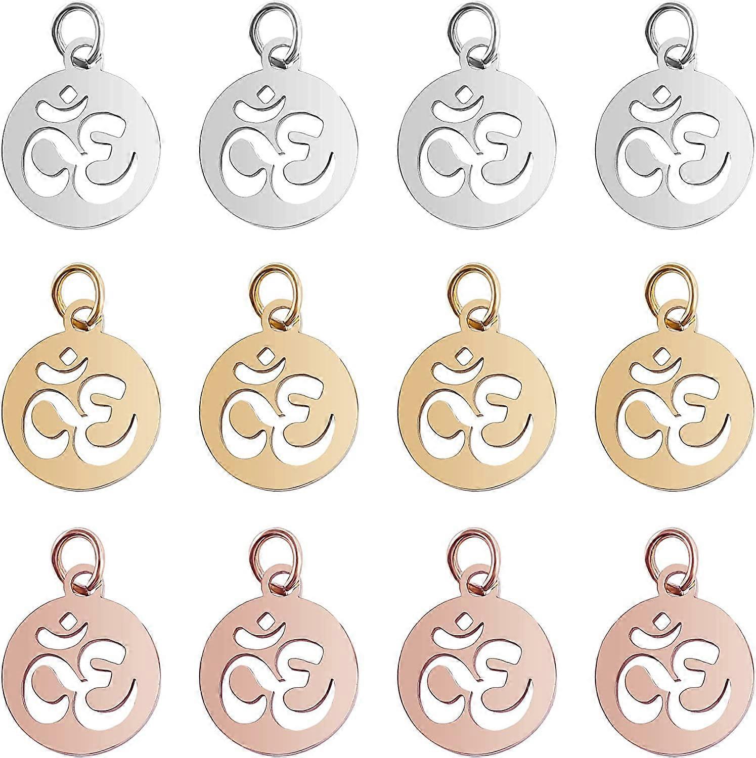 30Pcs 3 MixedColors 304 Stainless Steel Om Charms Yoga OM Charms Pendants (14x12mm) for Jewelry Making DIY Necklace Bracelet