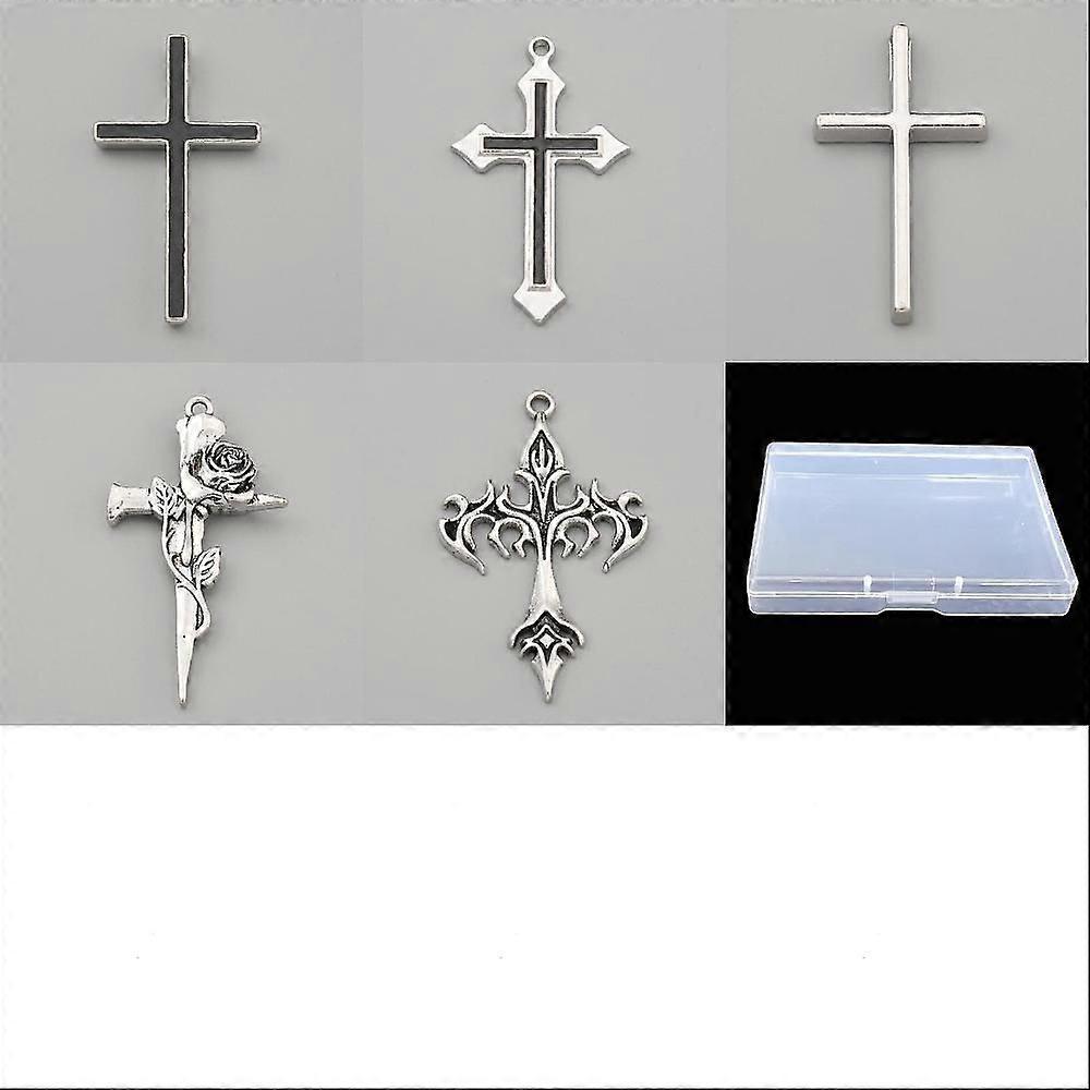 30Pcs 5 Styles Alloy Pendants with Enamel Cross Charms Antique Silver & Platinum 42.5~54x24.5~35x3~7.5mm Hole: 2.2~6.3mm 6pcs/style