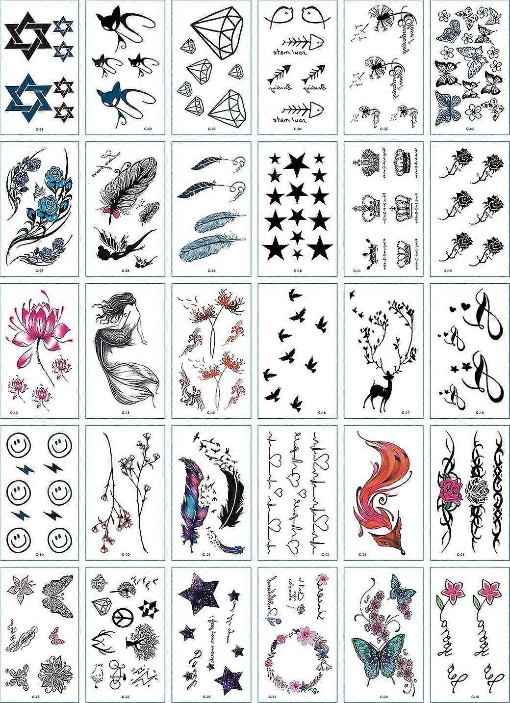 30 Sheets Flower Tattoo Stickers Fake Tattoos