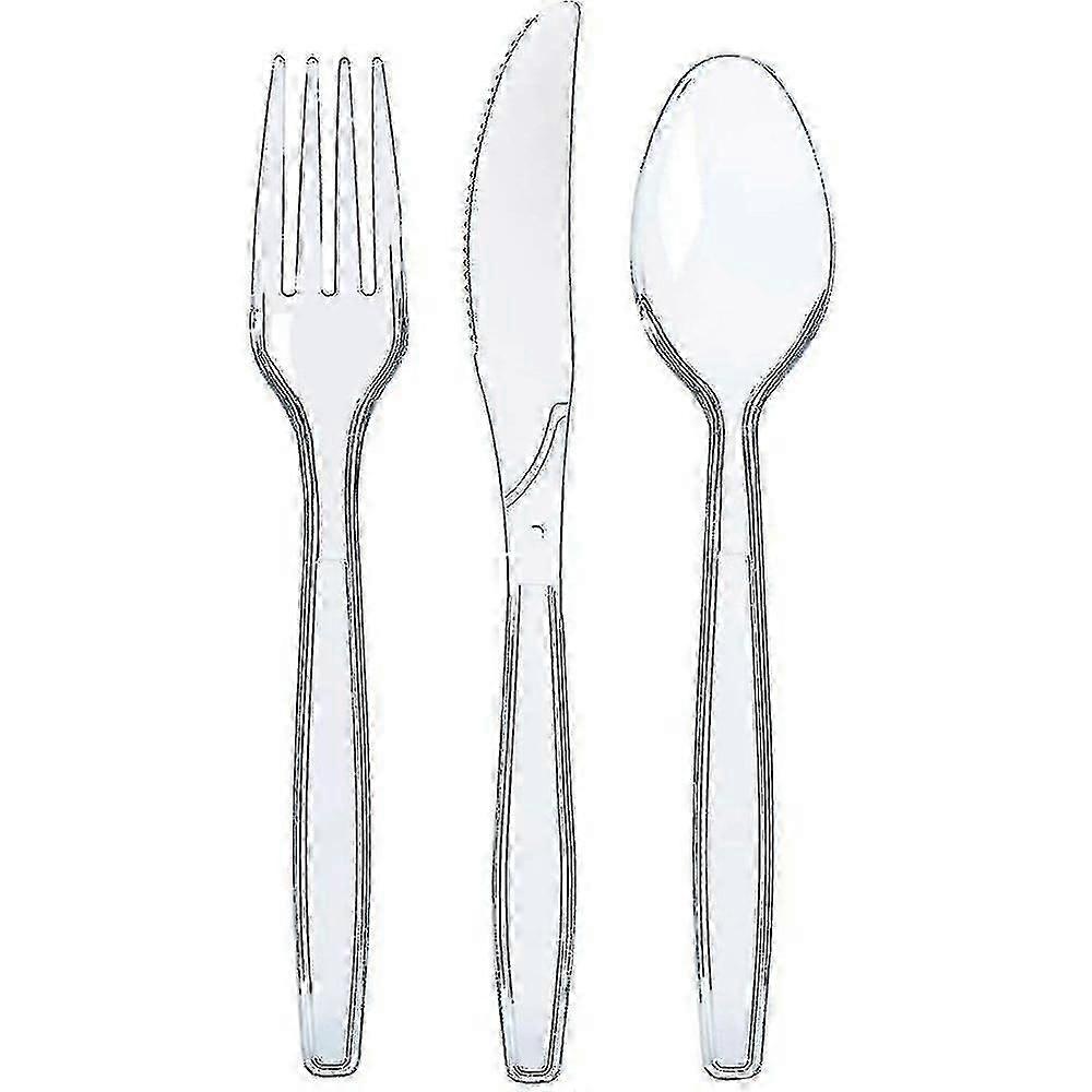 300-Piece Clear Plastic Disposable Cutlery Set with Forks, Spoons, Knives - Bulk Flatware for Events