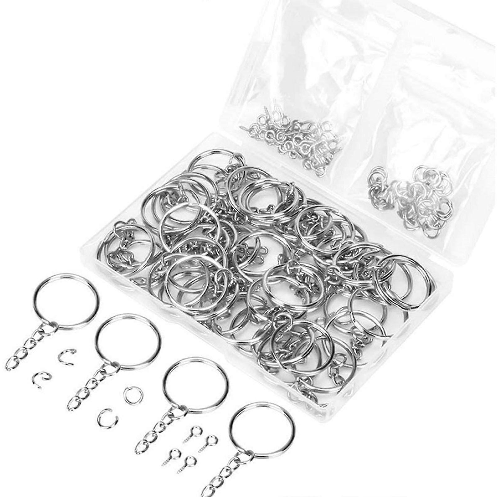 300 Pieces Key Ring Set Wear Resistant Iron Keychain Ring Screw Eye Needle Jump Ring Kit for DIY Crafts