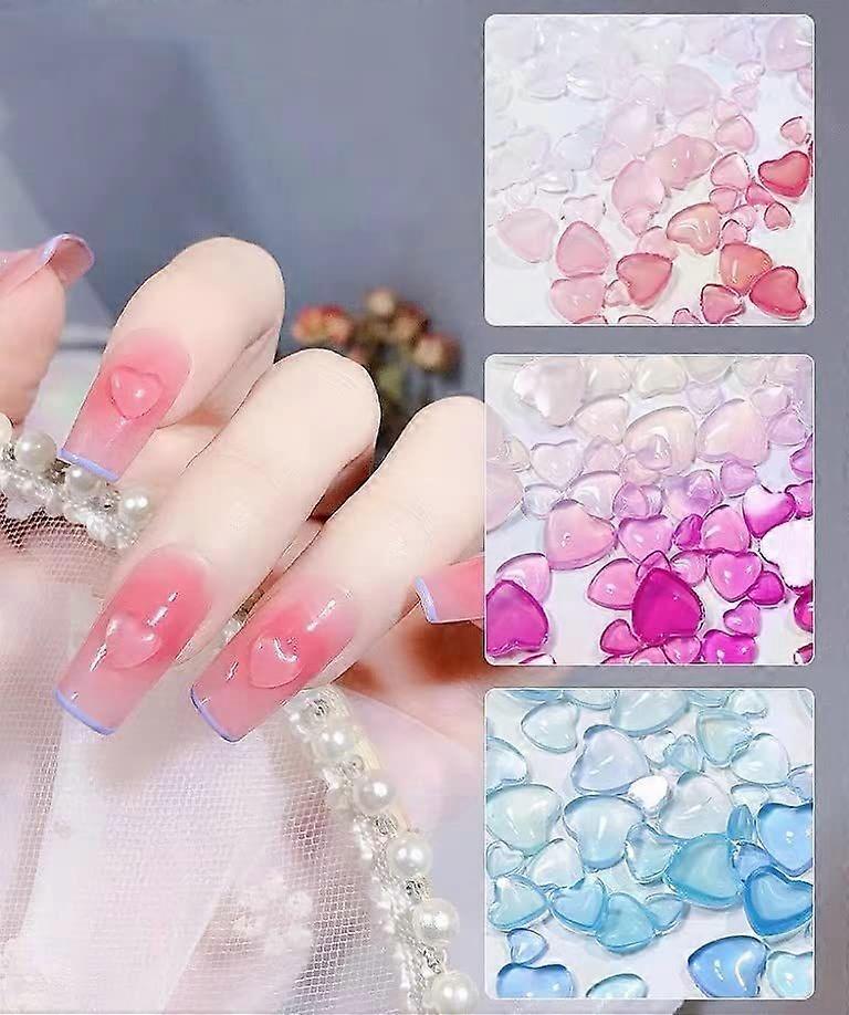 300 Pcs New 3D Color Change Peach Heart Rhinestone Nail Art Decoration ice