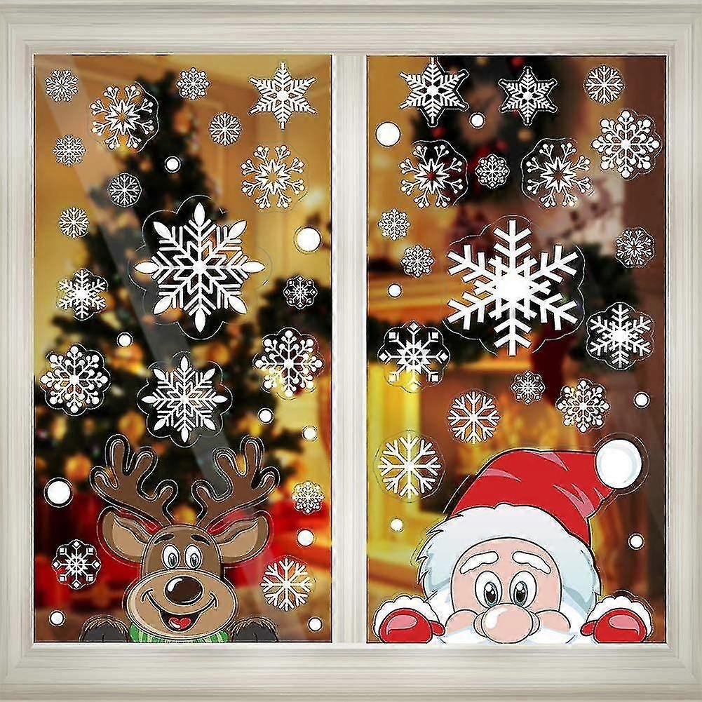 300 Pcs 8 Sheet Christmas Snowflake Window Cling Stickers For Glass, Xmas Decals Decorations Holiday Snowflake Santa Claus Reindee