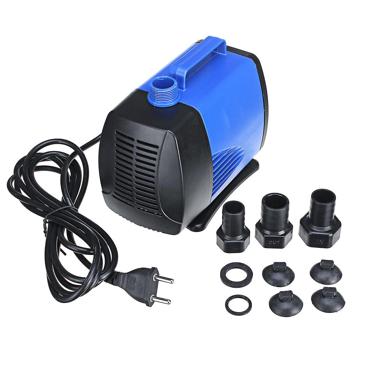 Features:  - Extremely quiet operation.  - Completely submersible motor.  - Suction cups to fit any aquarium.  - Suitable for freshwater and seawater use.  -Suitable for aquarium, fountains, spout, fish tank, etc.  -Submersible motor, low noise, low power consumption.  -Using ceramic shaft chip, wear resistance, durability, energy saving, full of power.  -It does not need any tools to disassemble it. It is easy to separate and easy to clean.  - The suction cups fit well on the surface of the glass and helps maintain its stability.  -Made of high-quality materials, non-toxic, safe, wear-resistant, durable, environmentally friendly.  -This is an underwater submersible pump with high performance and low noise. It is the perfect supply for fish tank or aquarium.  - Material: PC Shell, Titanium bearing, High Purity Copper Core, Ceramic Shaft.  Options: 5W 300L/H; 12W 600L/H; 15W 880L/H; 40W 2000L/H; 60W 3000L/H; 85W 4000L/H; 105W 5000L/H.  Attention: Pls read the description about our product, there are 7 options, please choose one Water Pump you want.     Specification:  5W 300L/H:  Color: Blue.  Material: ABS.  Size: 4*5*3.5cm.  Voltage: 220-240V 50Hz~60Hz.  H.max: 0.6m.  F.max: 300L/H.  12W 600L/H:  Color: Blue.  Material: ABS.  Size: 4.4*7*6cm.  Voltage: 220-240V 50Hz~60Hz.  H.max: 1.0m.  F.max: 600L/H.  15W 880L/H:  Color: Blue.  Material: ABS.  Size: 5*7*6.5cm.  Voltage: 220-240V 50Hz~60Hz.  H.max: 2.0m.  F.max: 880L/H.  40W 2000L/H:  Color: Blue.  Material: ABS.  Size: 7*11*9.5cm.  Voltage: 220-240V 50Hz~60Hz.  H.max: 2.5m.  F.max: 2000L/H.  60W 3000L/H:  Color: Blue.  Material: ABS.  Size: 7.5*14.5*11cm.  Voltage: 220-240V 50Hz~60Hz.  H.max: 3.0m.  F.max: 3000L/H.  85W 4000L/H:  Color: Blue.  Material: ABS.  Size: 10.5*16*14 cm.  Voltage: 220-240V 50Hz~60Hz.  H.max: 4.0m.  F.max: 4000L/H.  105W 5000L/H:  Color: Blue.  Material: ABS.  Size: 10.5*17.5*15 cm.  Voltage: 220-240V 50Hz~60Hz.  H.max: 5.0m.  F.max: 5000L/H.     Package included:  1 x Spout Water Pump