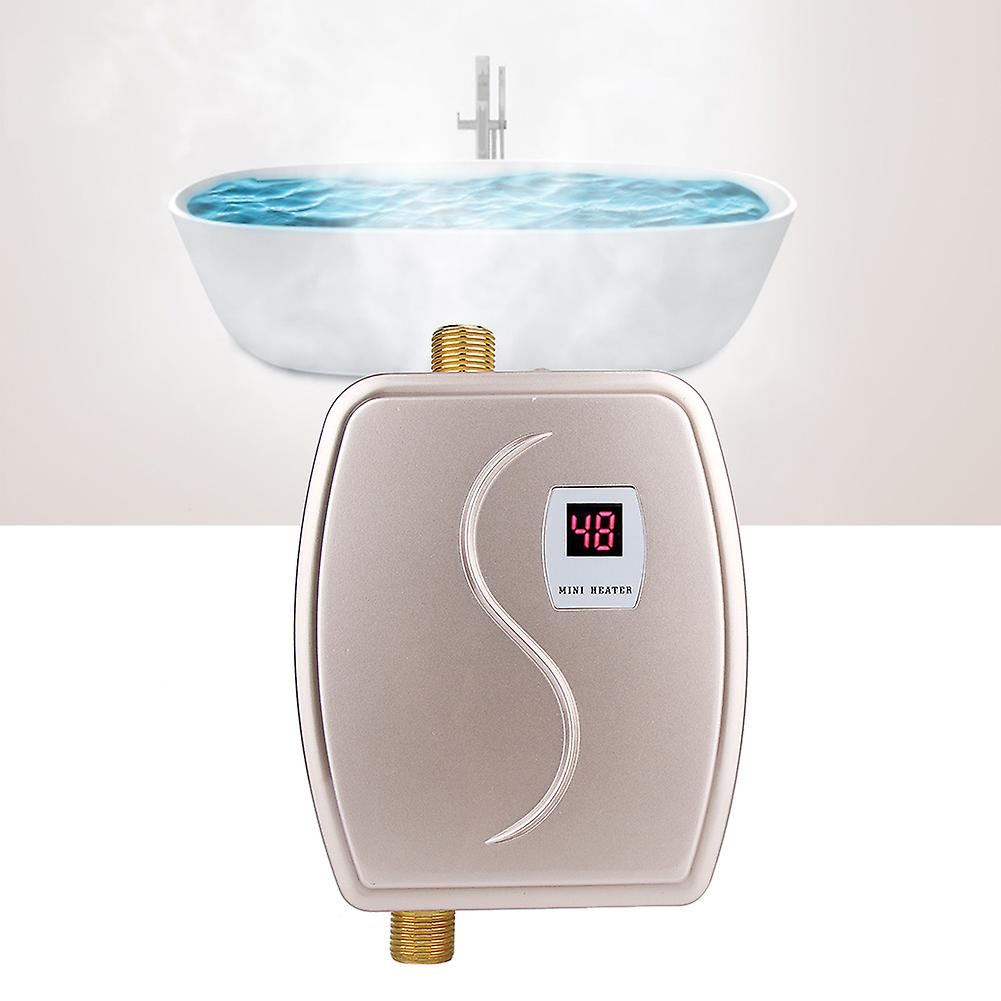 - 3000W Mini Electric Tankless Instant Hot Water Heater Bathroom Kitchen Golden Features: This is a water heater for the application of changing the cold water into hot water and it will meet your various needs such as used in kitchen, bath room, public restroom, etc. It is a high efficient water heater with compact size to produce the hot water very quickly. LCD digital temperature display. Freely adjust water temperature by water flow, simple operation. Safe heater, electricity saving, water saving, no pollution, no exhaust gas. Stainless construction with mini design, it is durable, elegant and fashionable. Specifications: Material: Stainless Steel Shell Power: 3000W Current: 13A Rated Frequency: 50Hz Rated Pressure: 0.04-0.4Mpa Temperature: 30-45℃(Considering the use environment in severe cold areas may not reach the maximum temperature of 45℃) Installation wire diameter: ≥2.5mm² copper wire Water pipe interface: G 1/2" interface Size: 16 x 13.5 x 6.5cm / 7.87 x 4.13inch (appr.) Package Included: 1 x Water Heater 2 x Fixing Screws 2 x Screws Protector 1 x Manual Note: 1. Please note this item should get the water first and then link the electricity when installing. 2. You'd better install this item vertically to ensure long service time. 3. Please kindly make a note if you need any adapter. 4. Monitors are not calibrated same, item color displayed in photos may be showing slightly different from the real object. Please take the real one as standard.