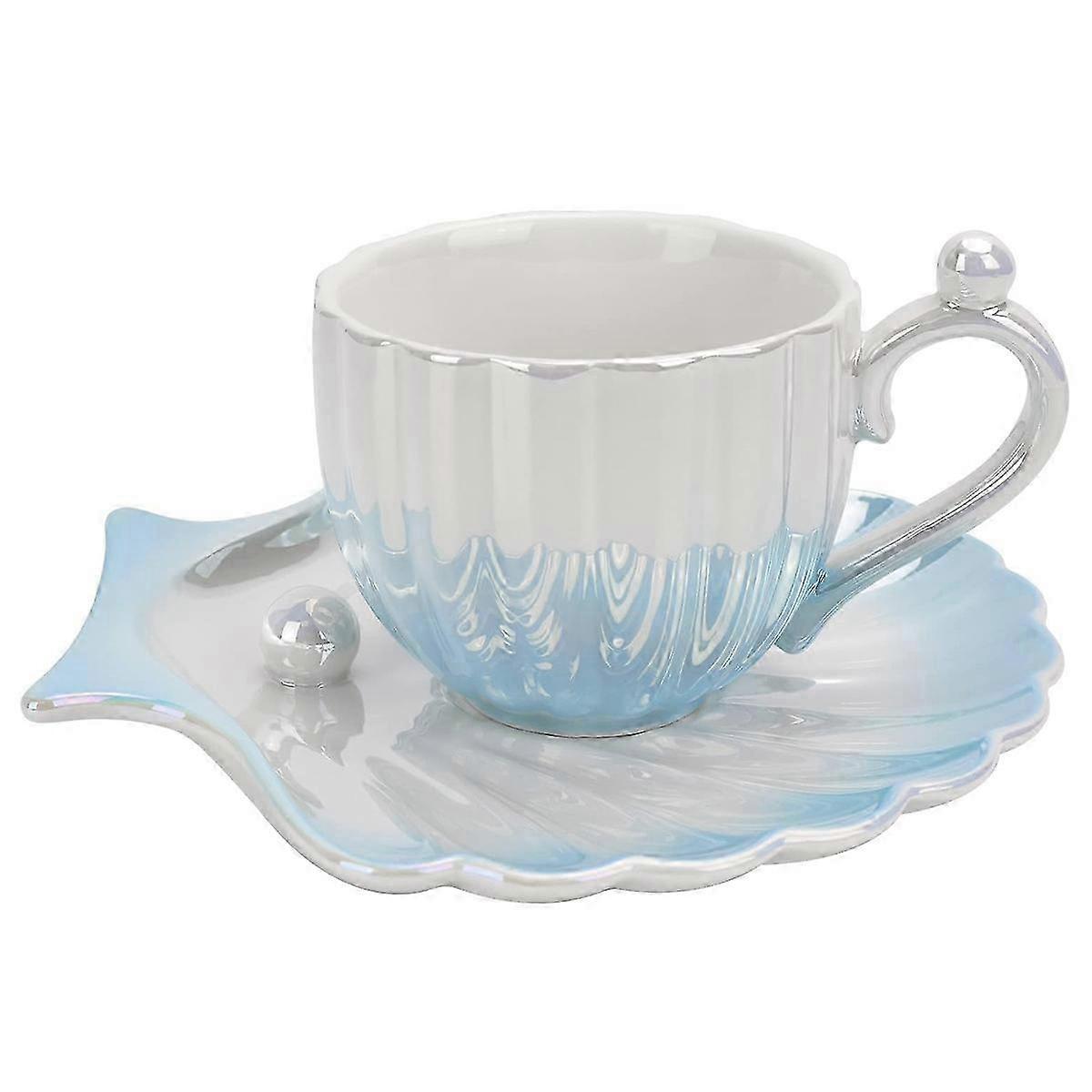 300ml Pearl Shell Coffee Cups, Creative Ceramic Shell Dishes with Saucers - Style2950