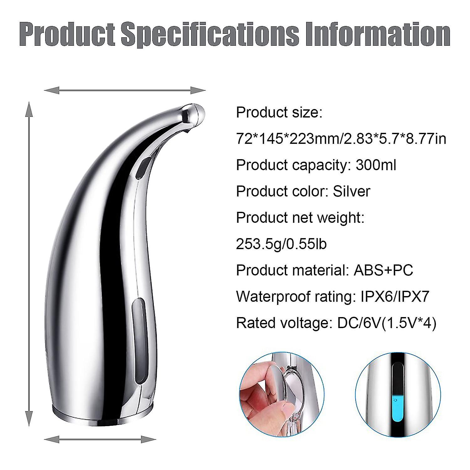 300ml Infrared Automatic Hand-free Touchless Soap Dispenser, Dish Liquid Lotion Gel/ Shampoo/ Chamber Auto Hand Soap Dispenser, For Bathroom Kitchen