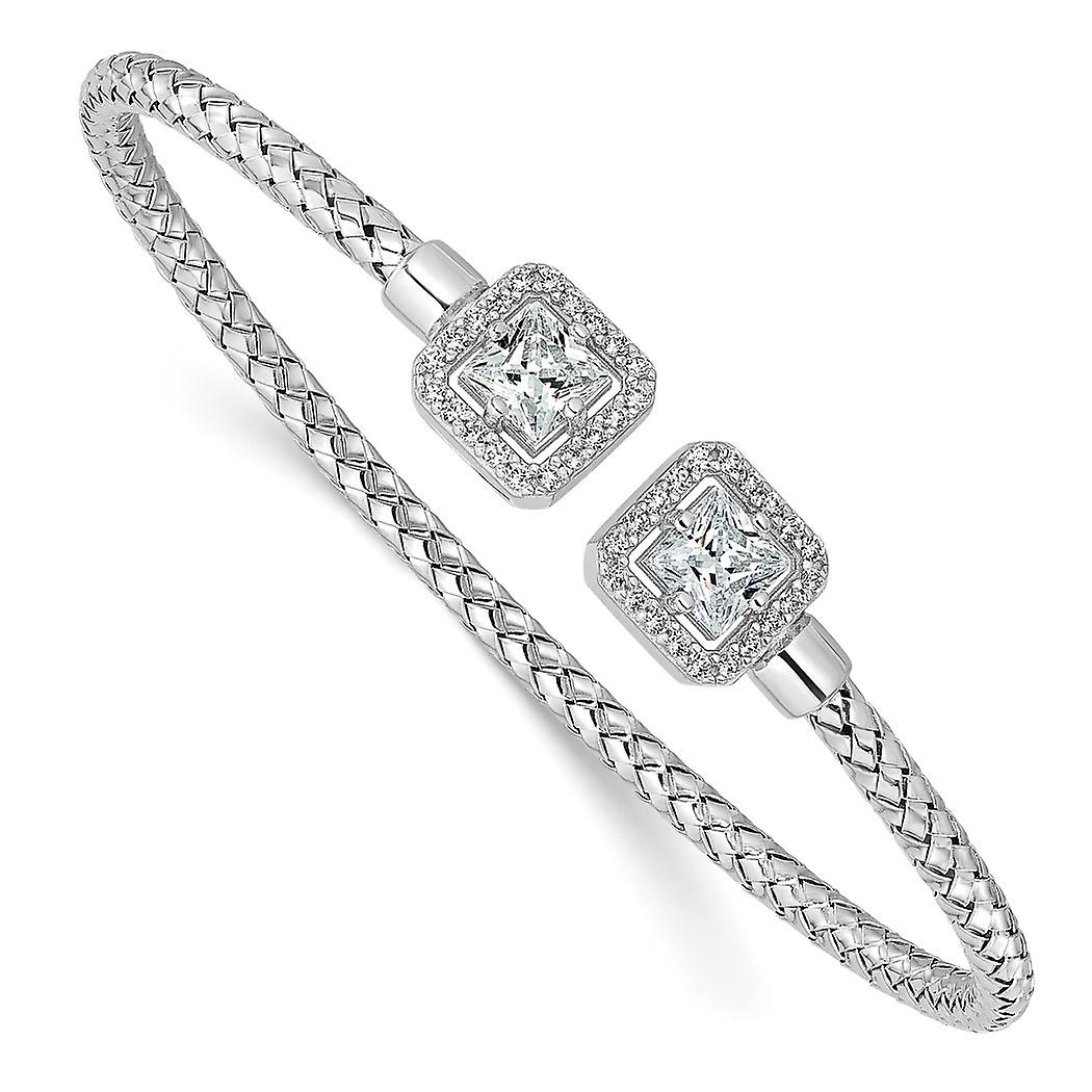 3.00mm 925 Sterling Silver Rhodium Plated Cubic Zirconia Polished Square Halo Cuff Bracelet-Cuff-Bracelet for Women