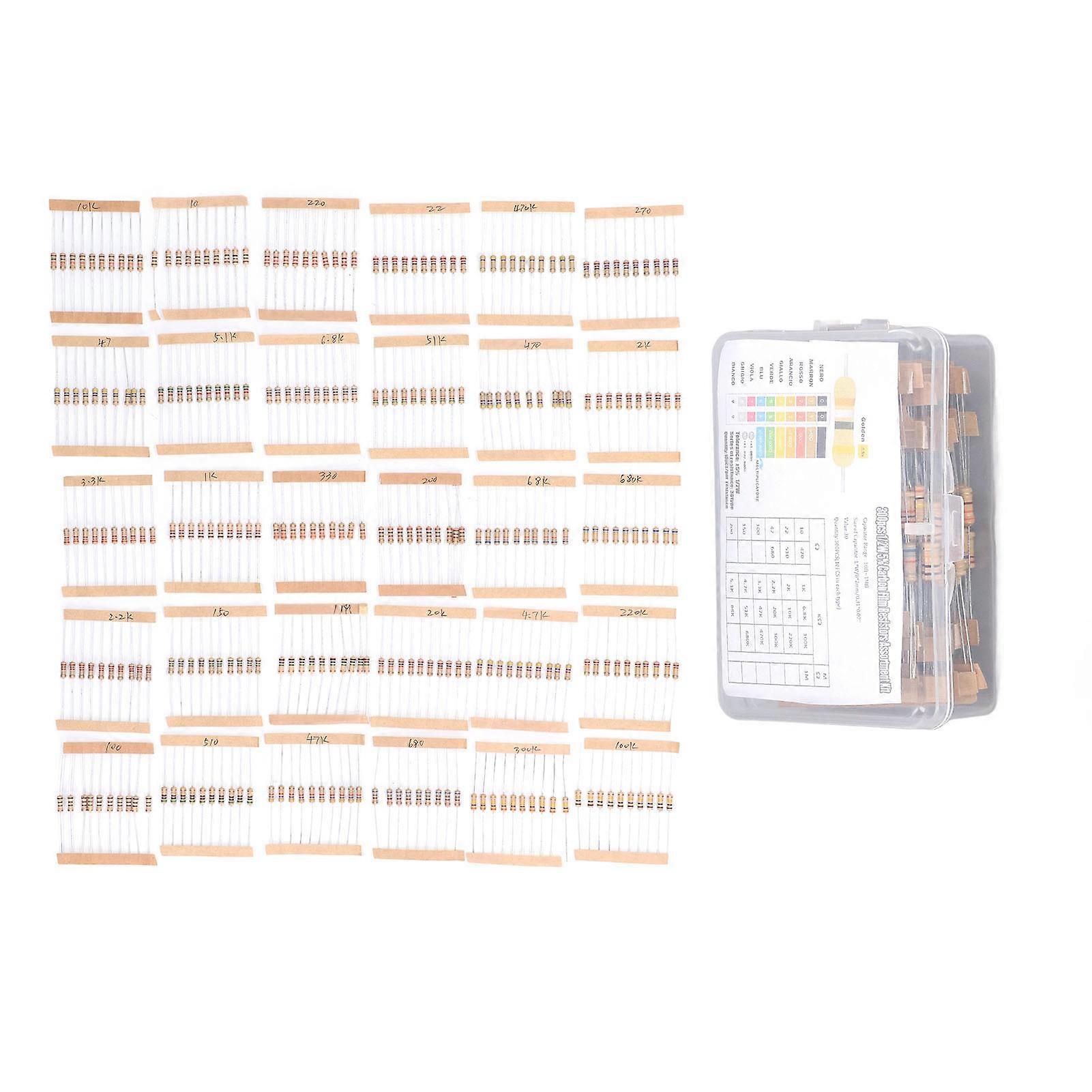 300PCS Carbon Film Resistors Assortment 1/2W 5% Tolerance 10R to 1M Electronic Resistor for Industry