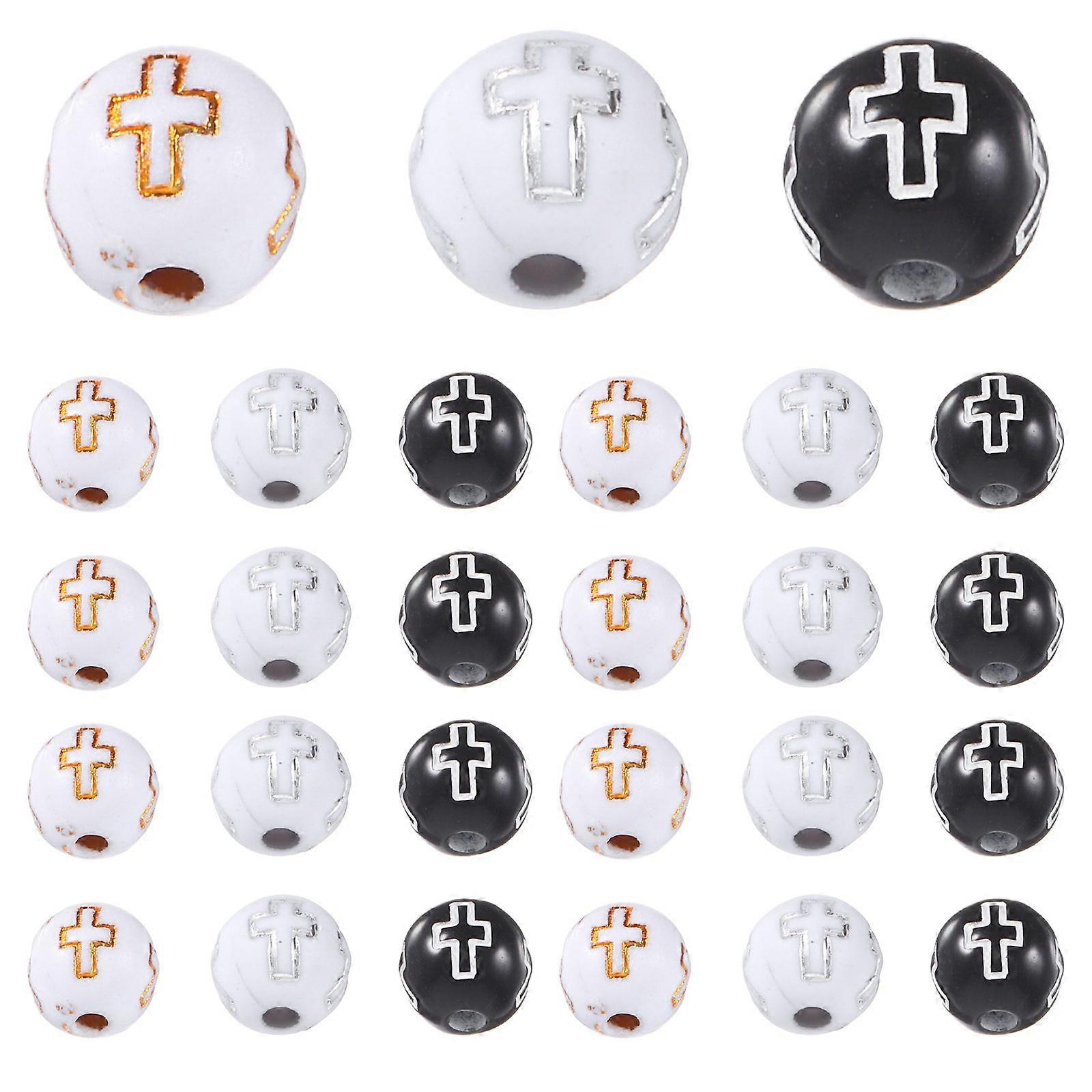 300PCS Round Cross Beads: Cross Pattern Wooden Ball Spacer Beads for Holy Catholic Rosary Necklace Bracelet Jewelry Making DIY Supplies
