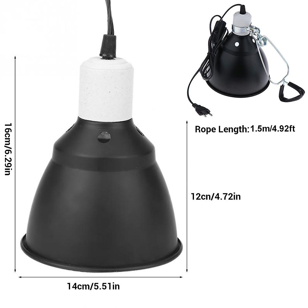 Material: aluminum and ceramic <br>Size: 16*14*12cm, cable length: 1.8 meters <br>Power plug: EU plug, UK plug, optional <br>Voltage: 220-240V <br>Maximum load: 300W <br>Uses: Suitable for turtles, snakes, frogs, reptiles, etc.<br>1、1. Made of high quality aluminum and ceramic materials, it is durable and has a long service life. <br>2、 <br>2. Heat-resistant temperature ceramic lamp head, suitable for lamps with E27 socket, suitable for installation of lamps less than 300W, safe clamping, hanging, easy to use. <br>3、 <br>3. Easy to use, just press the button to open, close, anti-scald, explosion-proof. <br>4、 <br>4. Suitable for installing UVA bulbs, energy-saving UVB lamps, infrared ceramic heaters, etc. <br>5、 <br>5. It can be used to protect the reptile terrarium, and it can also be used to soak the sun and supplement the calcium in the aquarium.Due to the different monitor and light effect,the actual color maybe a slight different from the picture color. <br>Please allow 2-3cm differs due to manual measurement.1 pcs Reptile Light Lampshade