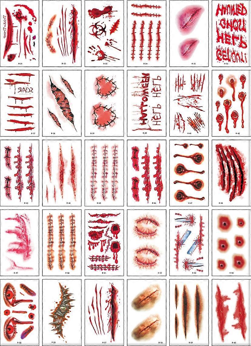 30 Sheets 3D Zombie Scar Tattoos Fake Scars Bloody Costume Makeup Halloween Decoration Horror Wound Scary Blood Injury Sticker